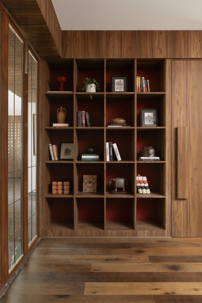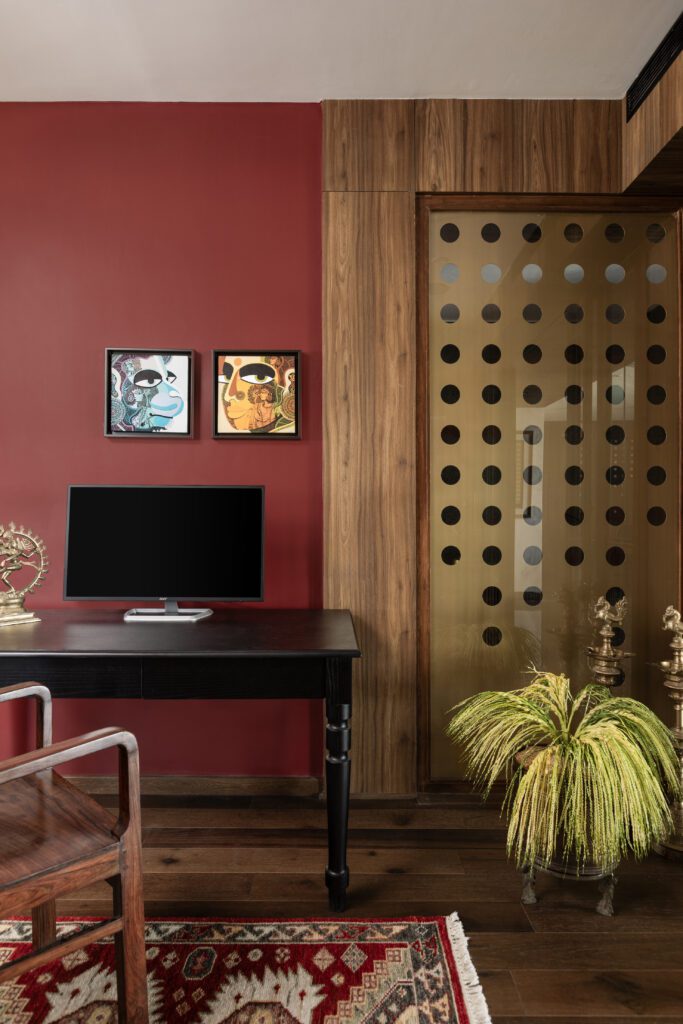Beyond the shared zones, an accordion of glass doors opens into a multi-purpose room awash in earthy marsala tones. During the day, it becomes a sunlit dance studio, its wooden floors echoing the rhythm of practice. By evening, it transforms into a study or a guest retreat – a versatile, character-filled cocoon.