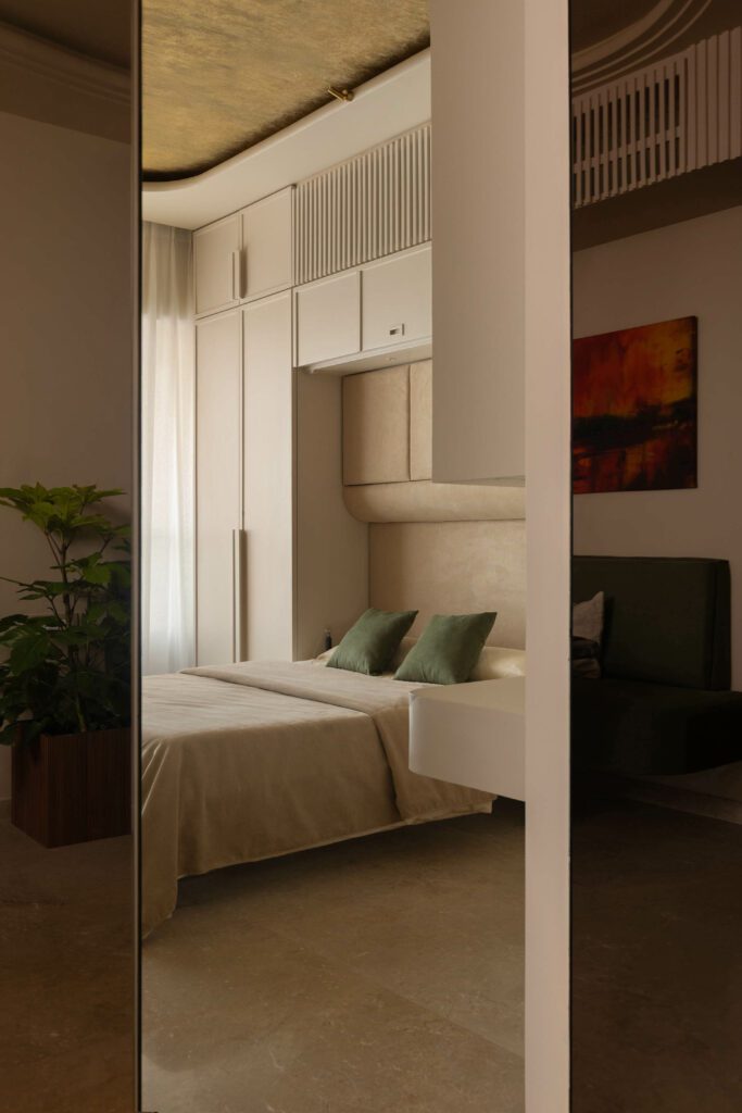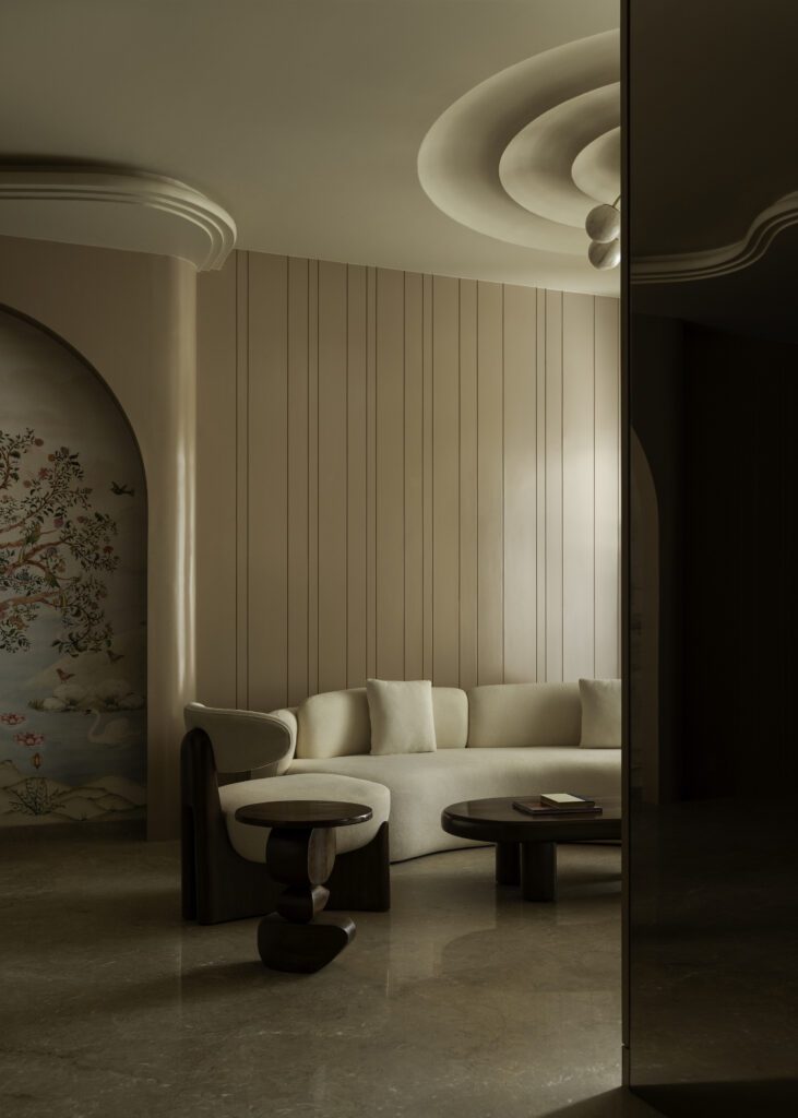 Passageways and smaller nooks follow the same philosophy of rhythm and flow. Rather than being left as neutral connectors, they are treated with subtle detailing to maintain continuity. Curved edges, coherent material finishes, and diffused lighting ensure effortless transitions between rooms.