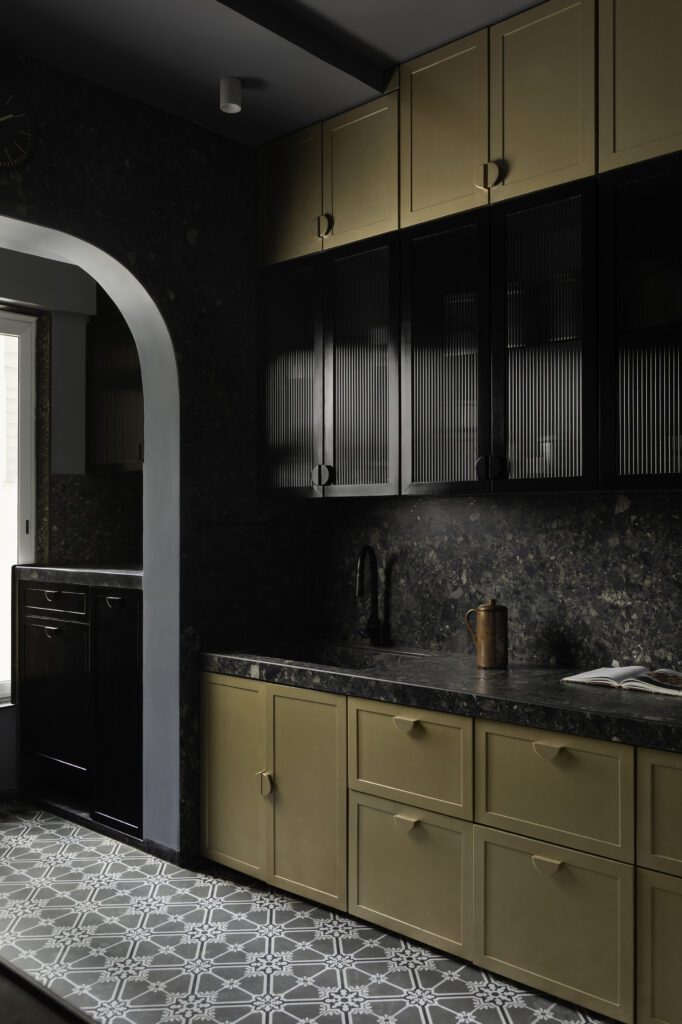 Designed for efficiency and clarity, the kitchen reflects a clean and organised layout. The material palette continues the home’s overarching calm, integrating warm neutrals and practical finishes that ensure longevity. The planning maximises storage while keeping the counter surfaces unobstructed. Soft lighting and muted tones allow the kitchen to blend into the larger open plan environment without drawing unnecessary contrast.