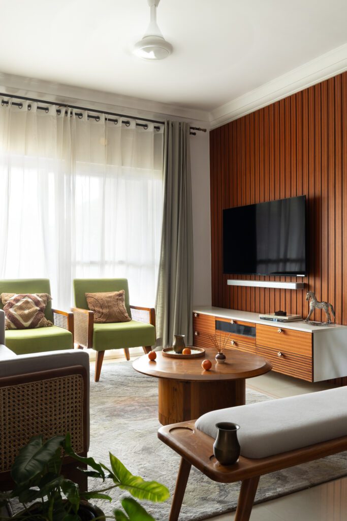 Ebony Residence unfolds as a study in warmth, restraint, and lived-in elegance within the energetic fabric of Greenage Apartments, Bengaluru. Designed by Studio Aelux under the creative direction of Ar. Angels James, the 1,500 sq. ft. home reinterprets modern colonial sensibilities through a distinctly minimalist lens.